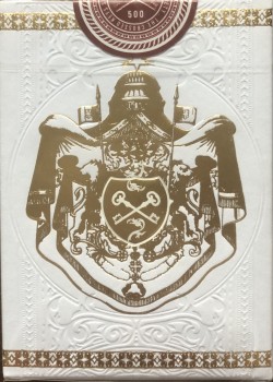 Designed and illustrated to the highest standards, the Imperial playing cards are truly a beautiful example of what luxury playing cards can be. The design of the tuck, back, and court cards are simple and elegant. With a minimalistic color palette of metallic gold, rich black, and crimson red, the Imperials will bring a new level of class to your table games. The tuck case is traditionally intaglio engraved and embossed using the traditional die stamping printing technique that gives the tuck case an opulent and tactile feel, that will please your fingertips as well as your eyes. The Imperial White Editions were printed in a very limited run of only 300 by The Expert Playing Card Company. The magnificent tuck case was engraved by Artistry Engraving & Embossing. The court cards and tuck were hand illustrated & designed by Jackson Robinson of Kings Wild Project.