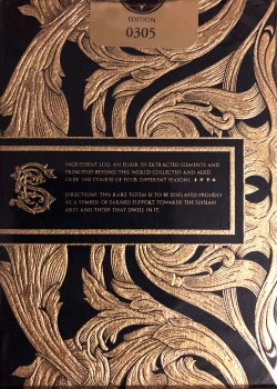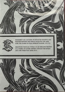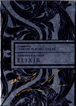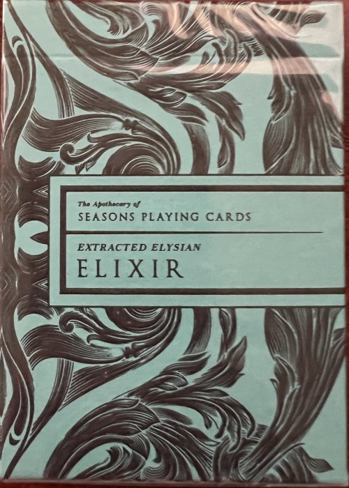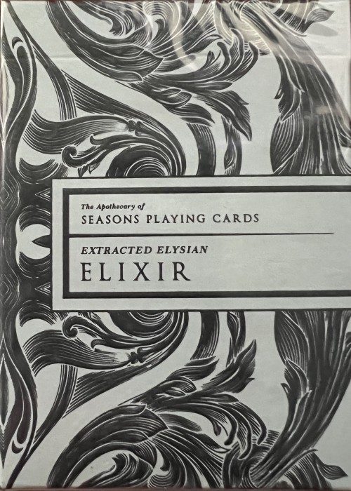 When the Apothecary Elixir Gold edition sold out on Kickstarter, the community was asked to vote on a new tuck / card combination. The selected combination was the Midnight Elixir deck featuring USPCC's Aristocrat Stock & Magic Finish with midnight black cards. The box color is moonlit silver with black with intaglio engraving.