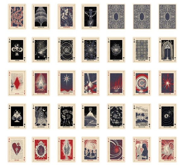 Open Portals is a fully illustrated poker-sized playing card deck by James R. Eads and can be used to play any card game. This deck is unique because each card has its own image and story. Within the box are TWO GUIDES that tell the myth of Open Portals and explain how to use the deck as both an Oracle Deck and a new energetic game of strategy and luck.