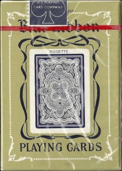 Crafted from the The United States Playing Card Company, 102 years after its initial release, is the deeply anticipated reprints of Blue Ribbon 323 Playing Cards; The cards’ origin stems from The Morgan & Company, first printed in 1916 and available till the late 1980s. Blue Ribbon, “Rosette back”, has now been reimagined, maintaining the artistic integrity of the original whilst providing a modern reinterpretation. The cards were printed on Bicycle crushed stock to replicate the true thinness of the originals. Additionally, from the tuck case to the ace of spades, the deck sports verbiage of the Cincinnati, Ohio USPCC. However, in parallel with the trends of modern card production, the back design now sports a precise, thin border. These are simply just few of the finer details that this deck possess. A breakdown of the attributes of this deck are listed as follows: