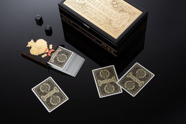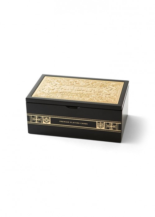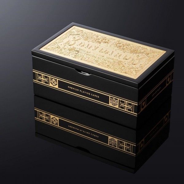 The Bespoke Box Set is inlaid with gilded accents and finished in high-gloss piano-black. Its metal lid features intricate sculptural details and a robust magnetic locking mechanism. Inside are six tailored compartments lined with leather. Included are three decks - the black and red edition, as well as a limited gold edition exclusively available with the set. Three more editions will be released prospectively.