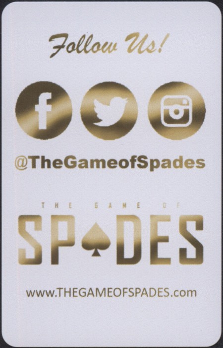 One of the best features of The Game of Spades deck is the distinction of the spades or "trump" suit in the deck from the other suits in relation to a traditional deck of playing cards. Because spades are always "trump" in this game, all spades cards have a metallic gold hue giving the suit the sense of superiority in the game it should rightfully carry.