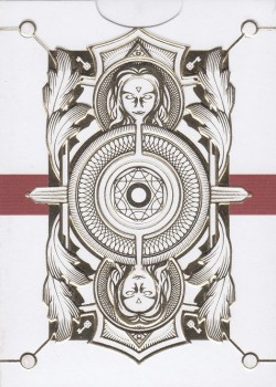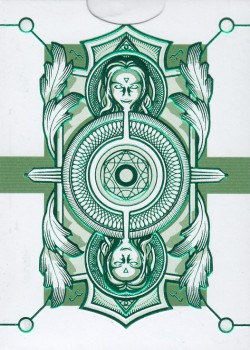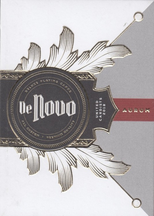 De Novo - meaning 'starting anew’ - conceptualises playing cards from a distant future with an elegant yet futuristic accent. The deck includes unique design, metallic & gold foiled tucks, inner foil, high quality tuck stock, fully custom designed cards, metallic ink backs, and premium black core casino grade cards. De Novo is the United Cardists 2018 Annual Deck.
