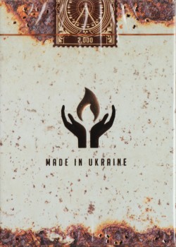 Sold with accompanying pack of 16 temporary crow tattoos of the 12 court cats, the Ace of Spades, the Ace of Spades in greyscale, and the two jokers. There is a photo of these below. The deck has a one-way borderless back, and Magic finish. The advertisement reads as follows: