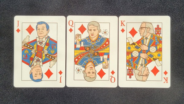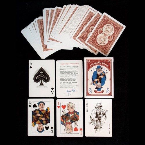 This professional casino-grade deck was artist-illustrated and manufactured in a limited run by the US Playing Card Company (makers of Bicycle and Bee decks) and has many unique features. The face cards are in honor of Randi's heroes, and include historic luminaries in magic, science, and other fields. The card back and box design incorporate skeptic, magic, and science symbolism and has a reveal on the box and hidden messages. Perfect as a collectible or for games and tricks!