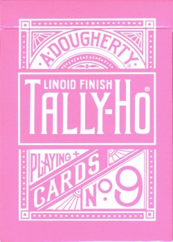 The cards feature special faces designed to enhance cardistry routines, and Tally Ho's famous Fan Backs printed on USPC's cardistry stock with metallic blue, green and yellow inks. The tuck case is embossed and UV-enhanced with graphics inside the tuck. The faces have a splash of sunshine in two corners, something new for Tally Ho decks.