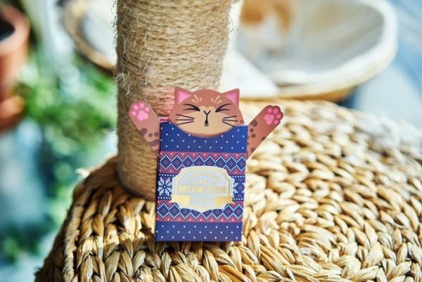 The second version is called Meow Star Knitted Sweater. Gold Foil is used on the Sleeve and it looks like a warm knitted sweater in fashionable hues of white, blue and red, just like one a caring grandma would knit for her beloved pet. And the buttons are made to look 3D!