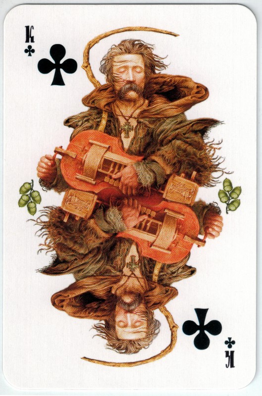 The first of two decks designed by famous Ukrainian illustrator Vladislav Erko specially for “Korchma Taras Bulba” - the restaurant in Moscow which specializes in traditional Ukrainian cuisine. Taras Bulba is the protagonist of the romanticized historical short story by Nikolai Gogol about the life of an old Zaporozhian Cossack, Taras Bulba, and his two sons. The cards feature figures based on authentic traditional Ukrainian costumes in exquisite detail, including traditional tools and musical instruments.