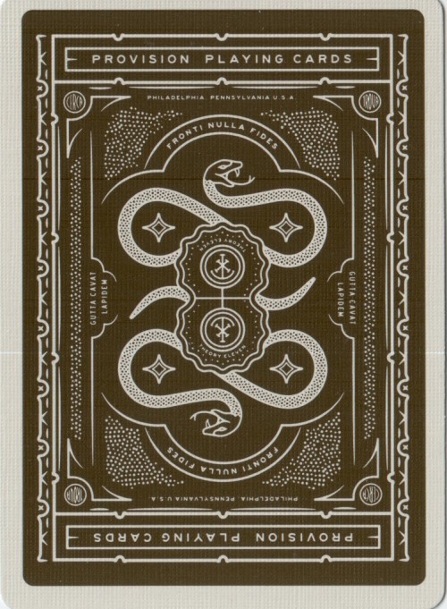 Illustrated by hand in Philadelphia, Provisions are 100% Made in America. Every aspect of the design was created from scratch - from the court cards to the aces, packaging, and vintage tax stamp seal. Even the inside of the box shines with gold foil.