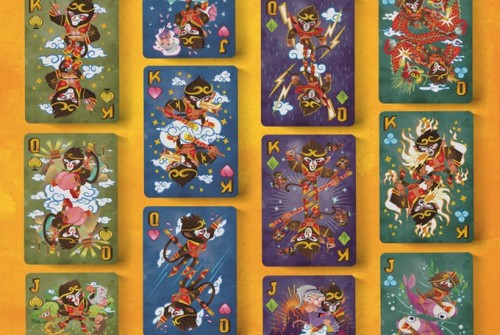 If you know a bit about Asian culture, you must have heard of the Monkey King before. That’s right it is the cunning-looking monkey that we are talking about. The story of the Monkey King originates from an ancient legend that, besides others, also had a strong influence on the Chinese and Japanese culture. Dragon Ball, Pokémon, Naruto, they all have been inspired by the characters of the original legend. This new design also uses the Monkey King as its theme, showcasing his many mischievous faces throughout the deck. These cards are fun and unique, a great fit for any collection! Designed by Chapet Natawaru & Kevin Yu for almost a year. We are very proud to bring you the Bicycle Monkey King Playing Cards! -KS