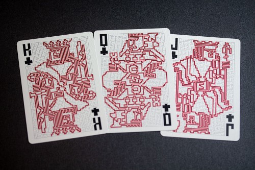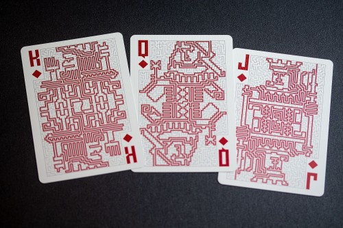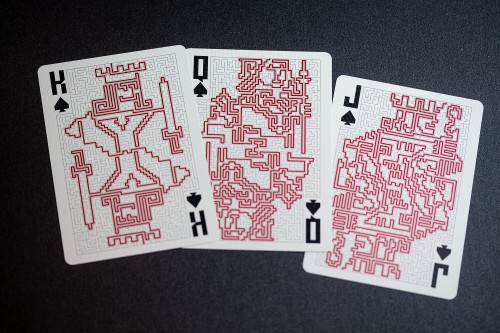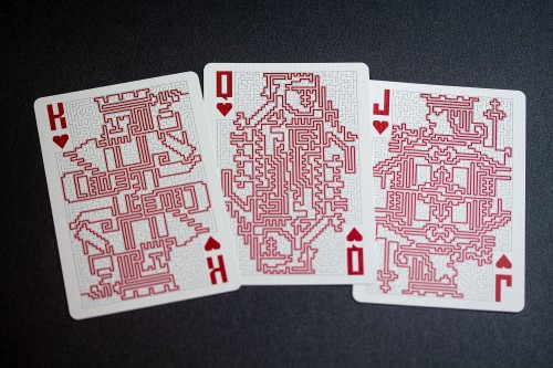 An exciting, out-of-the-box deck of uniquely custom playing cards. The Labyrinth Playing Cards, by artist Jackson Robinson of Kings Wild Project, features a full set of Court cards that are formed by the solutions of 12 unique mazes. Add a fresh new look to your table games with this fun and still very functional playing card deck.