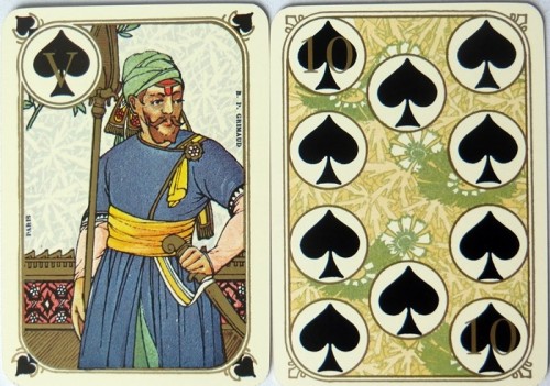 An exceptionally interesting and well-preserved example of late 19th-century playing cards, specifically produced for export to the Asian market. Dated circa