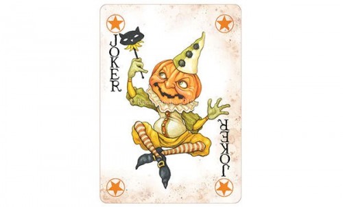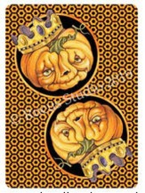Rucus Studio has teamed up with The United States Playing Card Company (makers of Bicycle Playing Cards) to produce a custom poker deck. The Halloween Royals will be printed on Premium grade stock, tucked inside a box, and shrink wrapped. The entire deck has been customized, from the Jokers, Ace of Spades, court cards, and number cards. All are backed with a classic Halloween pattern and Jack O'Lantern Prince.