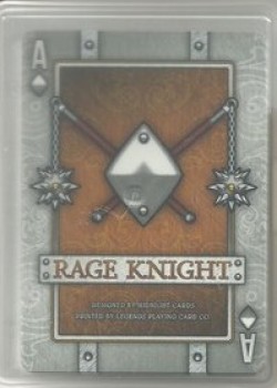 The Rage Knight Back Card features an Etched Armour background and a head-to-head layout of the Rage Knight's shield, Bull Head crest and Battle Mace. The Face Cards for the Rage Deck have a metal texture with grey full-bleed coloring. The PIPS have a silver metallic look, and are inlaid with Rivets. The Spades and Clubs have large center areas with green coloring. The Hearts and Diamonds have large center areas with amber coloring. The green and amber color variances help with reading between the suits and overall playability. Similar to the Fury Deck, I used an older Courts Set for the Jacks, Queens and Kings. More images of the Rage Knight Cards can be found at the bottom of this project page (including the Jokers).