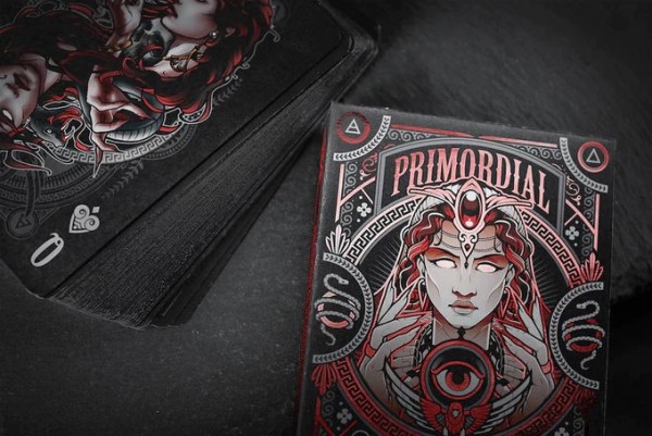 Primordial playing cards by Costa Pantazis and designed by Charles Adi (Blackout Brother) are based on this idea. The primordial deities are the first gods and goddesses born from the void of Chaos who formed the very fabric of the universe, were known as the Protogenoi (protos meaning "first," and genos "born").
