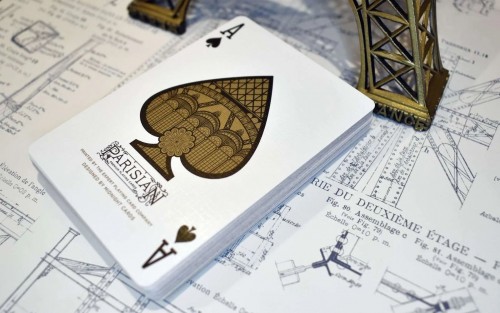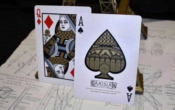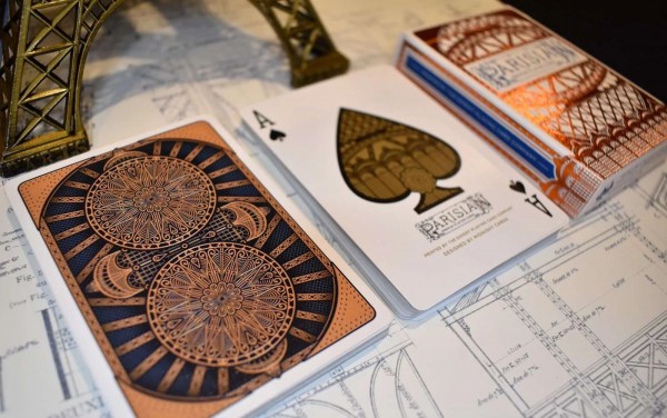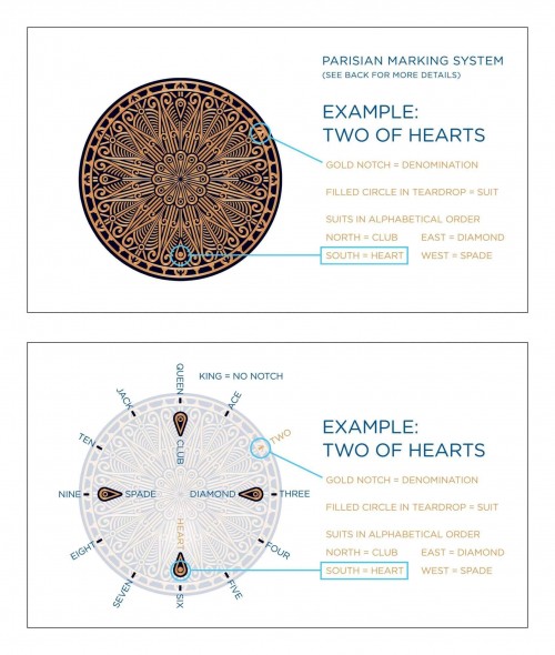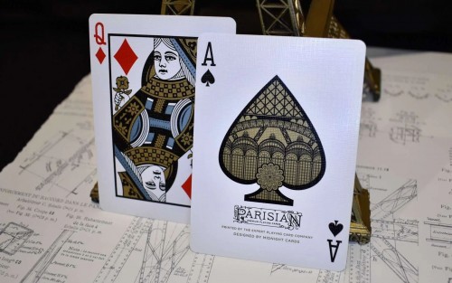 Inspired by the architecture of the Eiffel Tower, the Parisian Deck is fully-marked for suit and value. The intricately detailed design is timeless in form and function. It is printed by Expert Playing Cards, with their NEW China Printer.