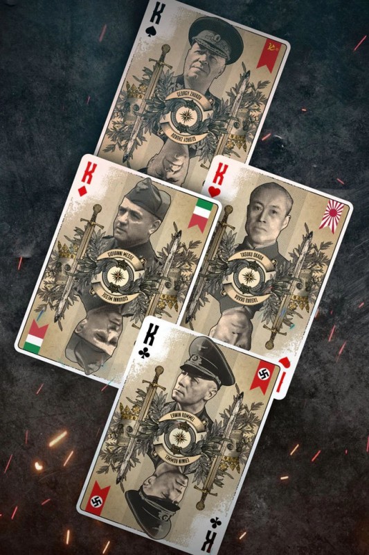 These 2 decks represent 8 different countries that took part in World War II. The countries are divided into Invaders and Liberators according to the powers they belonged to, namely Axis and Allied powers. The only exception is USSR, which was included into the Invaders deck, as it was the aggressor in World War II towards Poland.