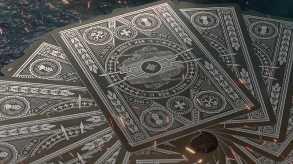 Both boxes are made in a style that resembles dashboards in tanks during the Second World War. I tried to recreate the kind of heavy equipment control panel with buttons and metal shields. The design represents decorative elements of oak leaves and bay leaves, as well as symbols worn on military forms of that period. On the back of the boxes there is a list of countries represented in each deck, as well as the Latin idiom.