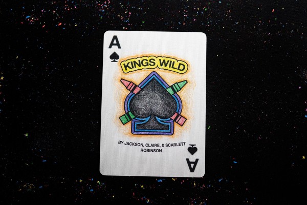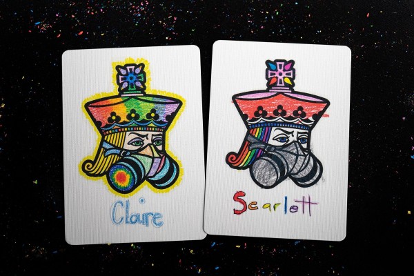 A fun deck of cards taking you back to your elementary school days. Claire and Scarlett Robinson, Jackson's two daughters hand-colored all of the court cards, aces, and jokers.