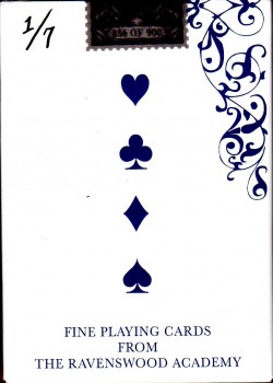We at the Ravenswood Academy engage in Fencing, Music, and Archiving. We also shuffle cards like no one else (see the above video). Our passion for playing cards and our appreciation for aesthetics culminated in the desire to design our very own deck; 52 beautiful pieces of fine paper in complete harmony with our skills and visual preferences. We present: JEUX D'EAU Playing Cards.