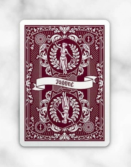The "Lady of Justice" is represented as blindfolded, because she will not judge by appearances. The scale represents equality, perfect balance. The sword, on the other hand, is used to administer justice. She holds higher the sword, in this Justice deck, to emphasize this aspect of her jurisdiction.