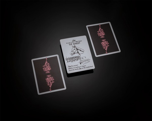 The highly collectible Ace Fulton’s Casino playing cards in an all-new black and pink colorway. This new edition to the series features the original enlarged logo back design, Arrco®-style court cards, a new ace of spades and matching marquee jokers. Inspired by vintage casino playing cards, the Ace Fulton's Casino playing cards combine a retro style with a modern stock and finish. Printed by the U.S. Playing Card Co. on D&D's trademark thin stock preferred by cardists. Housed inside a premium letterpress-printed tuck box.