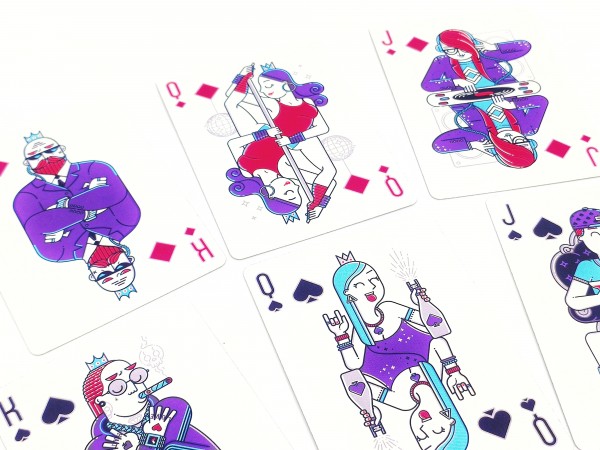 NIGHTCLUB Playing Cards have two editions: Champagne Edition & UV Edition. Both boxes were designed to be visually appealing. The bright colors already make us understand the mood of this deck: lively, cheerful, fun. Only with a glance perfectly communicates the message that these cards want to give: THANK GOD IT’S FRIDAY!