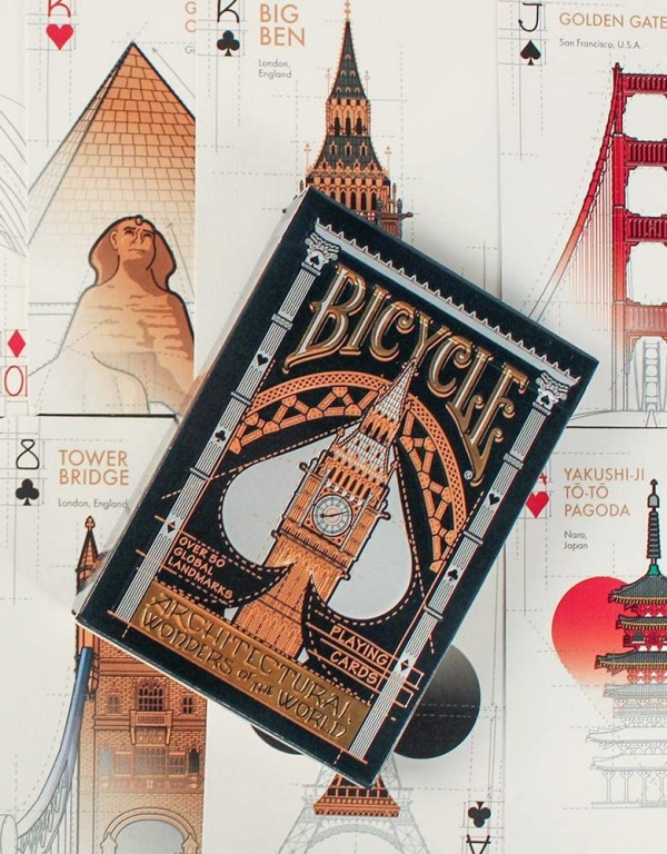 Amazon exclusive - Bicycle architectural wonders of the world is a celebration of the great works of architecture throughout history as seen through the eyes of an artist who truly appreciates beautiful structures. Each card front showcases a hand illustrated, famous piece of architecture from across the globe. When all stacked up, the deck is an exploration of 54 of the world's most marvelous structures.