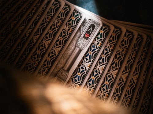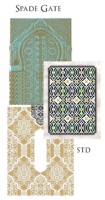 This series celebrates the beauty of Moroccan architecture and the origins around it. Because they were unable to create art with the human figure (sculptures and paintings), they celebrated their art by embracing complex and intricate geometry. These patterns were a way of expressing themselves and is what built the culture into what it is today. Throughout the following decks you’ll see multiple examples of different types of plaster and zellij pattern work, including a custom-made discovery pattern for the faces and courts.