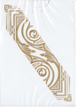 The tuck case is printed on a soft, uncoated white stock and is all embossed with just a few foil accents.