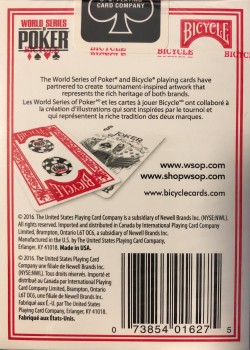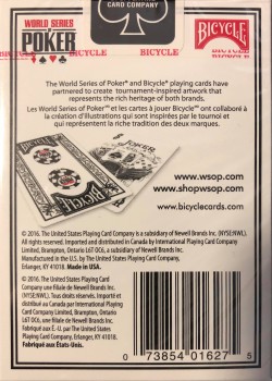 Many of these Bicycle WSOP deck editions exist. Differences are usually in the back (different designs and years) and in the bottom (with and without information). Furthermore, there are different presentations (individual, celo wrapped pairs and also double sets in boxes).