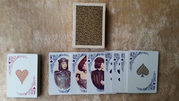 Great care has been taken to blend traditional elements into the card faces, which feature customized designs for both the court cards and the pips. Each court card is displayed against a scroll-like background, with the characters dressed in traditional attire. The intricate ancient patterns on the garments symbolize harmony and beauty.
