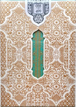 Exclusive to 2019 Seasons Mystery deck sale. This was in the Uber-Rare tier. Limited to 75 sets. This deck is an engraved white tuck with pearlescent purple gilded ROOM type box interior. When illuminated the mirror reveals Santa flying over the Sahara offset in silver metallic ink.