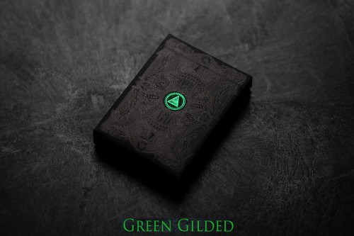 Black Reserve Note - Green Edition Only 250 Produced, much less were released. This was an error deck that was not released widely due to faulty gilding. There is no way of knowing this is gilded from the tuck box. The only way it can be confirmed is by opening the deck to see the green gilding.