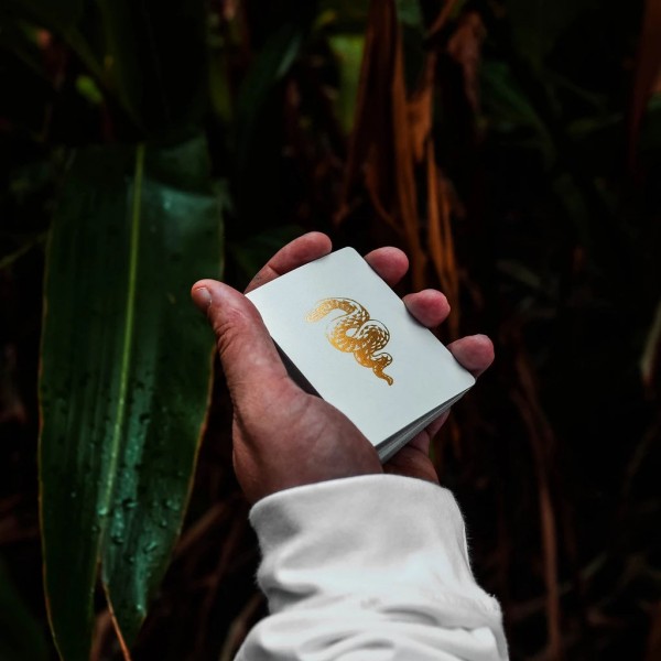 One ad card features the foil stamped snake designed by renowned artist Abraham Garcia Sanchez.