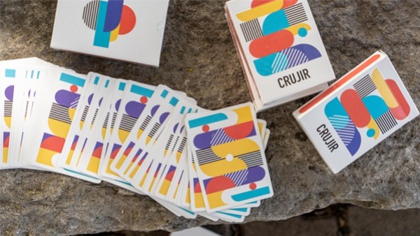 A mixture of Bauhaus, geometry, and colors. Lines, blocks, circles, and sharp edges come together to create the one-of-a-kind back design on Crujir Playing Cards.