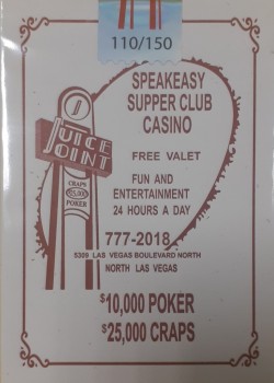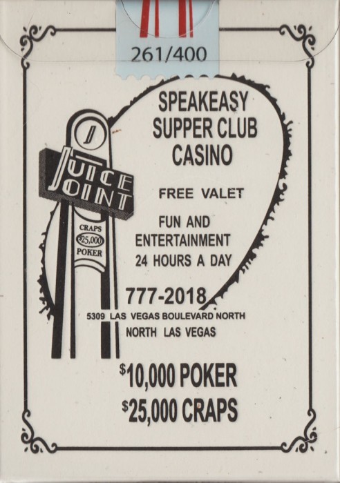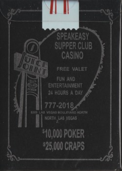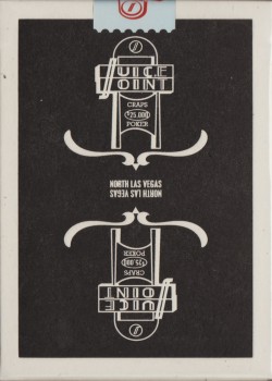 From Doc's Playing Cards, Juice Joint playing card pays homage to a rare 1970’s version of a deck of Silver Nugget playing cards. This deck was originally printed on the same stock and with the same finish as the famous Jerry’s Nugget deck of the 1970’s. However, unlike Jerry’s Nugget, the Silver Nugget decks were never sold in gift shops and are very rarely found unopened.