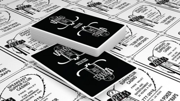 The Jucy Joint deck features a custom tuck, mirrored card backs, and Ace of Spades. Since this is a casino-inspired deck, the pips, indices, and courts are pretty much standard. Fans of vintage casino decks will not be disappointed!