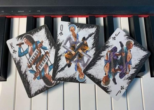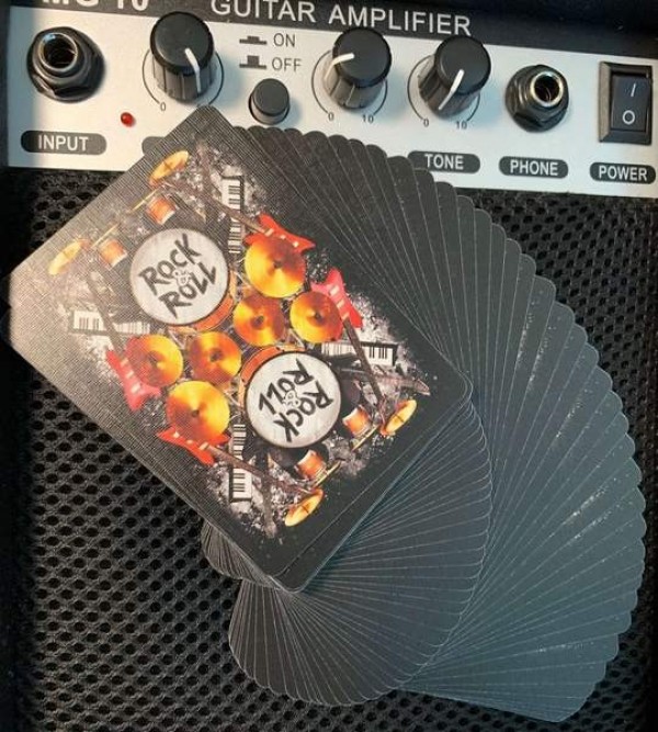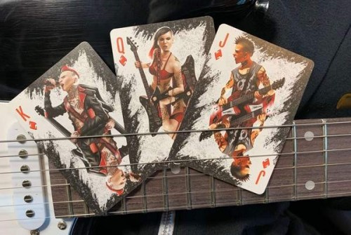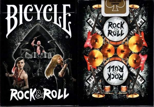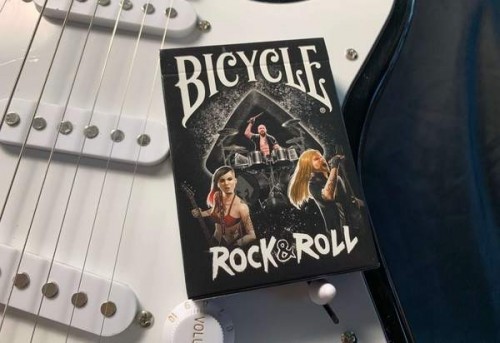 Get ready to ROCK… your next card game or magic routine with the fully custom limited edition Rock & Roll Bicycle playing cards. The court cards represent musicians from various rock genres such as metal, punk, emo and pop. The aces are drummers and the jokers are a security guard and a fan. Also included are a double back and face card to perform 2 card monte and other magic tricks (instructions not included.) So, grab a deck and get your show on the road.