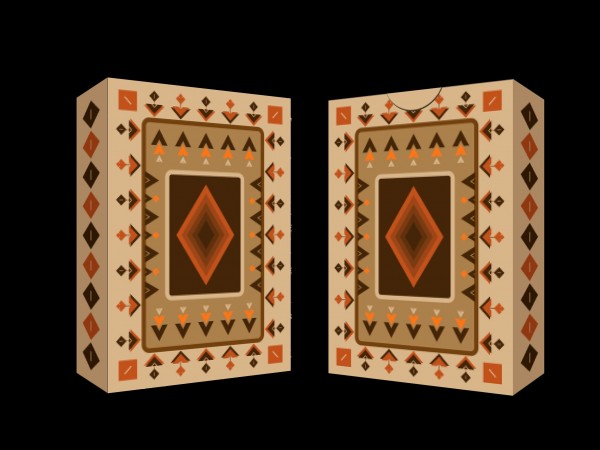 Reuse suit symbols for the back design. The back design is nothing but cutting, cloning, and arranging the suit symbols. The exceptions are the stretched diamonds and triangles, to match the standard card dimensions ratio, and the ripple circles, which is working as a filler.