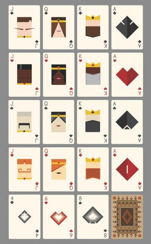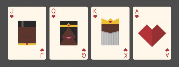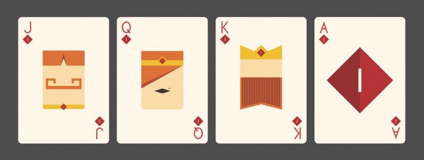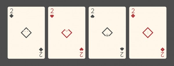 Have a non-traditional layout for number cards. In one of my many trials, I stacked up the suit symbols on top of each other, and I was hooked with the idea. Not only it gives a novel 3D-ish look and feel, but also if you flip through the number cards, you can see an animation effect, like the animated gif image above.