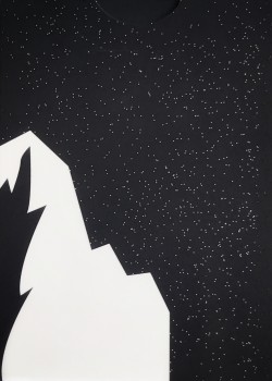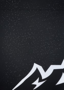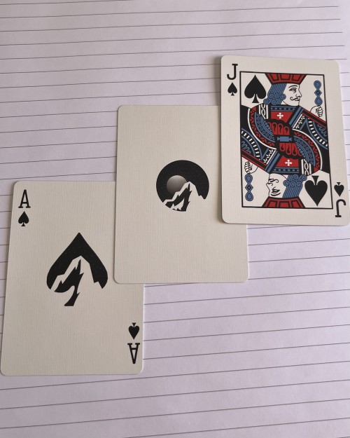 The tuck and card backs feature a jet black night sky, with a contrasting stark white mountain...representing the challenges that lie ahead of us before greatness. The stars speckle slightly in the background as you stare into the its immenseness.