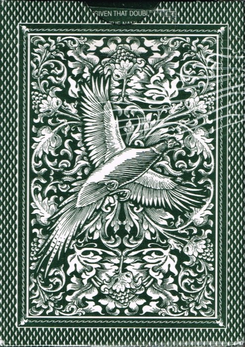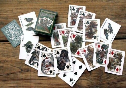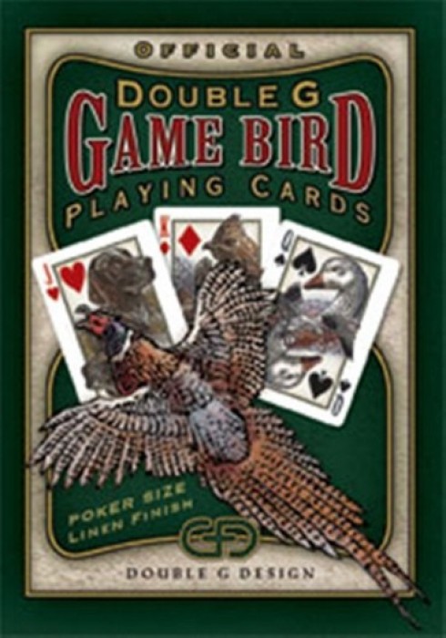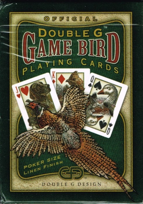 Designed by Double G and produced by Ideaman, Inc. this deck has 4 Jokers and 52 custom cards, including custom courts featuring game birds and bird dogs.