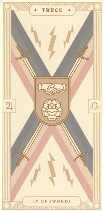 A gilded edge tarot deck based on the language of color, the tree of life, and the tradition of the Golden Dawn. 4 colors represent the 4 elements, and a rainbow represents universal energy, creating a simple framework for reading.