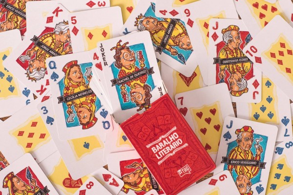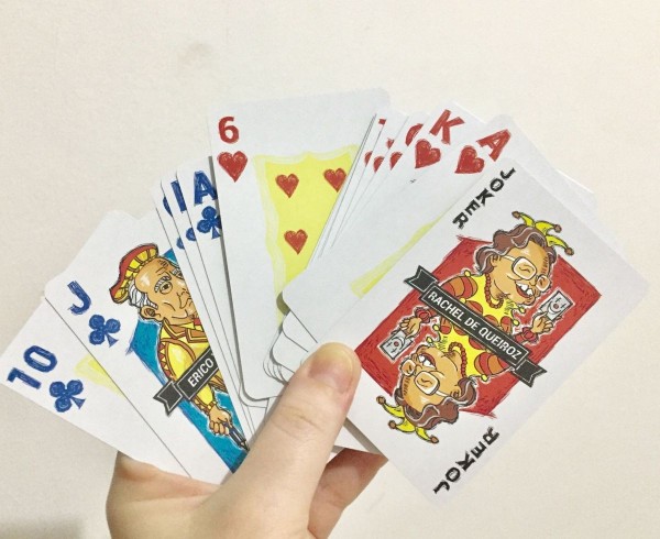 All cards are custom made. The court cards and jokers includes drawings of iconics authors of the 30's brazilian literature.