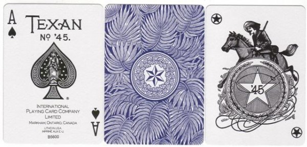 From the book: ”Jeff Busby’s Secret of the Palmettos” As a playing card alone – even without the “Secret of the Palmettos” – the Texan is a superior card. Aside from the appeal of the elegant back design, its equal to the standard Bee diamond Back or the old Bee Worm Back for visual deception with a false deal. The finish is well-known air-cushion finish which allows the card to literally “float” over each other. They are highly flexible, so steals and palms work beautifully. Moreover, they have a “slip”, “snap”, and a thin feel to them that makes turning over a double, feel like handling a feather. The cutting process is superb. (Jeff Busby, 1998)