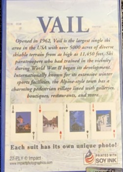 A British invention, started in the 19th century in Austria and the Swiss Alps. The fashion spread across Europe, and to the USA and Canada. Soon tourists were being seduced by posters designed by great graphic artists – like Hohlwein and Maurer. The classic posters in this pack celebrate the drama of skiing on spectacular, uncluttered mountains when speed was a thrilling novelty. (birdplayingcards.com)