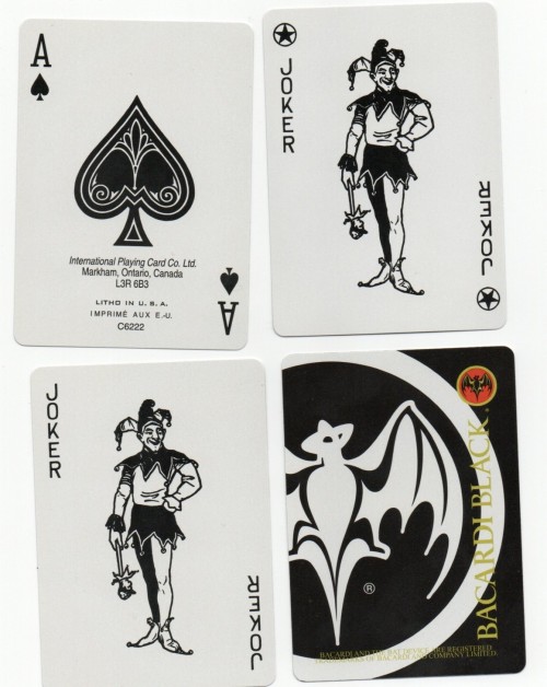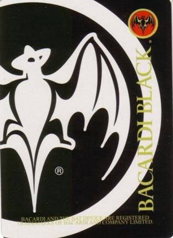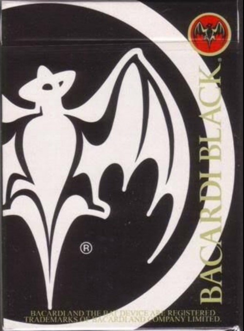 Bacardi Black \\\"Bat\\\"" Logo Poker Size Playing Card Decks. These International Playing Card Co. decks by USPCC were made in Cincinnati