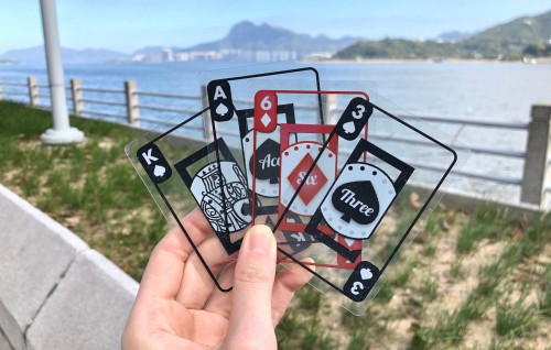 V. 2057 is a 54 cards transparent and waterproof playing deck (standard sized of 63x88mm). The cards are made with quality plastic that is stiff but flexible to bend in nature. The deck comes in waterproof push-lock display box.