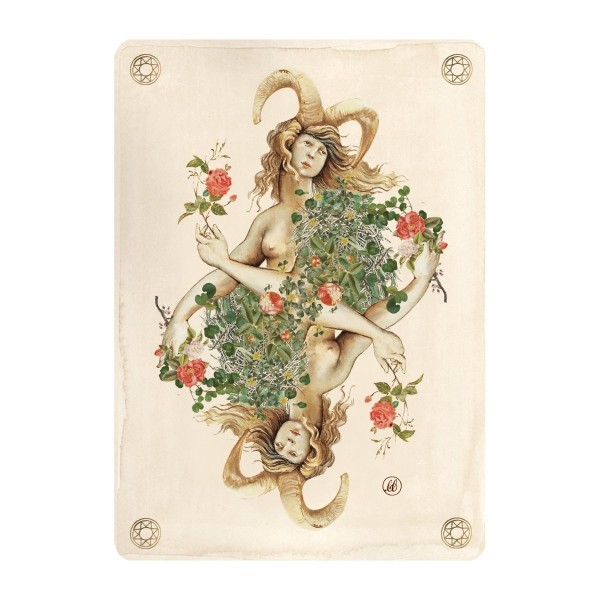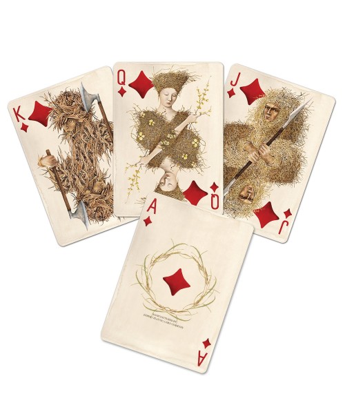 Our Pagan playing cards features the ancient Pagan symbol of “The Whisk of Laima” on the tuck box. Laima is the Baltic Pagan Goddess of luck and fate in addition to beauty and magic – the perfect symbol for games of chance and strategy!